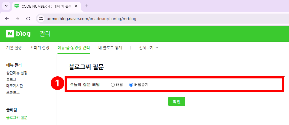 내 블로그 – 관리 – 메뉴·글·동영상 관리 – 블로그씨 질문으로 이동합니다.